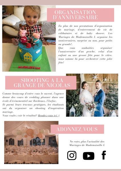 Que s'est-il passé dans le monde merveilleux des Mariages de Mademoiselle L. en ce début d'année? Pour en savoir plus, lisez notre L Wedding Magazine de février-mars!
