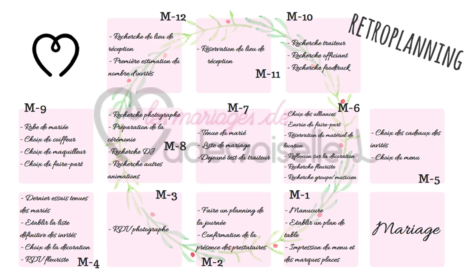 Les Mariages de Mademoiselle L vous livre son rétroplanning afin d'avoir une idée claire de l'organisation de votre mariage!
