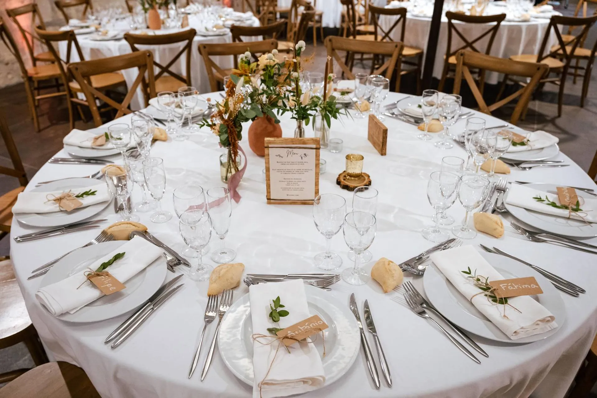 Les détails soigneusement choisis ont ajouté une touche personnelle à cette journée déjà empreinte d'émotion. Chaque élément de la décoration, des nappes aux centres de table, a été sélectionné avec amour pour refléter l'unicité du couple et l'atmosphère décontractée et joyeuse de leur union.